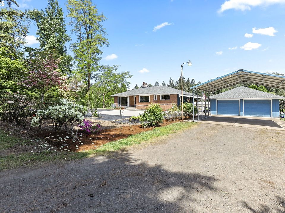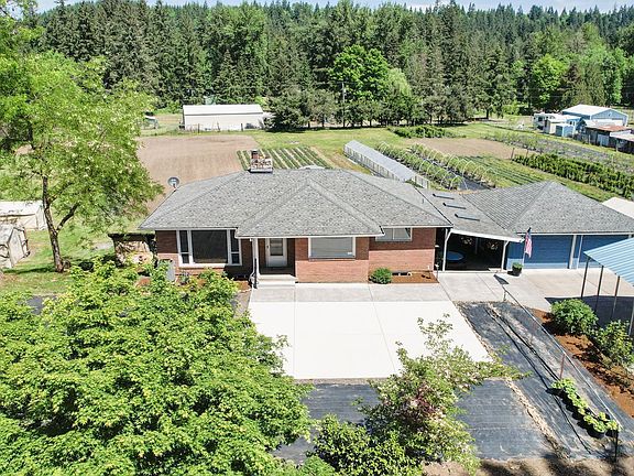 Welcome to this 3 bd, 2 bath midcentury modern home featuring beautiful built-ins, fireplaces, hardwood flooring, and exterior brick. Enjoy the living room's massive picture window allowing abundant natural light. Possible separate living quarters in unfinished day-light basement. Step out the kitchen door to 25 rows of strawberries, 11 rows of raspberries, 10 rows of blueberries, and 15 fruit trees. This 3 and 1/3 acre hobby farm offers a connection to the land with ample space for a diverse garden. Two wells more than handle the irrigation load. Incredible opportunity to own/work a small rural farm--but still only ten minutes from the city.