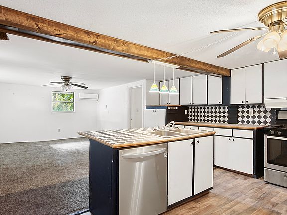 OWNER WILL FINANCE!!! Home was updated in 2022 and 2023 and offers a great size living room, a large open kitchen with gas stove, kitchen island, tons of cabinets and eat in area that overlooks the family room allowing family time while entertaining and also while cooking. Both BR offer large size rooms and could accommodate more than 1 child per room. The primary bathroom has all the things on your check list as well! Home also includes a covered side porch with wood burning fireplace that is great for morning coffee or late-night relaxing. Home has tons of storage; yard includes 2 detached carports and workshop area and room for outside activities! Looking for your new home or an investment - new roof, new split units and plenty of space! Price is firm.