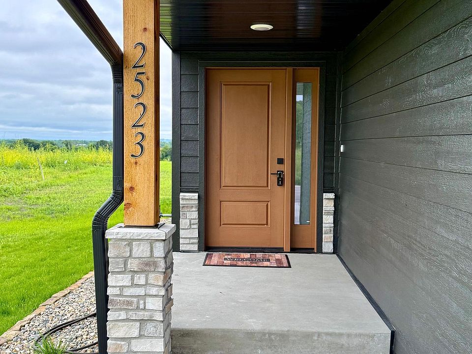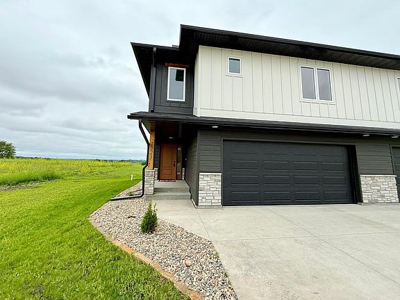 New Construction twin home with gorgeous views of Detroit mountain, located just mins from downtown Detroit Lakes. Three bedrooms, three bathrooms, 2525 finished square feet includes a main level with kitchen living and dining space with beautiful patio doors out to an optional deck with long distance views. Kitchen is finished with customized tile work and modern lighting, stainless steal appliances, soft close cabinetry and an accented island. A custom fireplace cascades all the way to the ceiling to see from the second level and staircase. A basement with nice light windows with a living room, one bedroom, a bathroom and utility and ample storage. Upstairs boasts 2 bedrooms and 2 bathrooms with a large laundry on the same level. Primary bedroom offers a bright master bathroom, walk in shower and double sinks with a walk in closet with wood organization units already installed. Concrete driveway, landscaping in place and grass starting to grow. Home has spray foam rim joist, forced air and natural gas furnace and fireplace. Ask about option to add a deck to backyard.