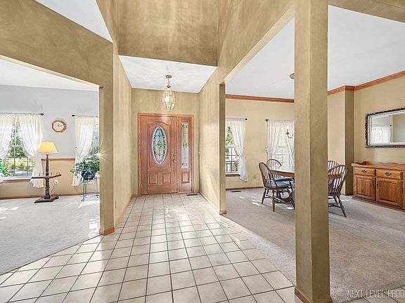 Welcome to this well maintained gem nestled in a quiet cul-de-sac in highly sought after Orchard Valley Subdivision! This move in ready Brick front home features a first floor open layout that seamlessly connects the living room, spacious dining room, a comfortable family room with a brick heatilator fireplace as a central feature, a bright, spacious kitchen boasts a center island, Granite countertops, walk in pantry, vinyl plank flooring and SS appliances. Upstairs the master suite is a retreat in itself,with a spa-like bathroom, big walk in closet as well as a second closet; 3 additional bedrooms with walk in closets and a spacious hall bathroom with double sinks.The large rec room in basement offers versatile space for relaxation, work and play and has a vent free fireplace. Ideal location, near parks, shopping, restaurants, golf course and I88. Numerous Updates include, concrete stamped patio, roof 2023, upstairs tilt-in windows 2022, siding 2015, kitchen flooring 2022, furnace and ac 2015, insulated garage door 2023, garage has a 50,000 BTU heater. Don't delay schedule your showing today!