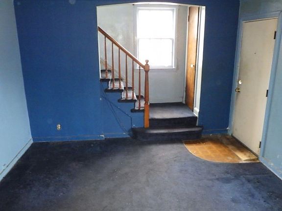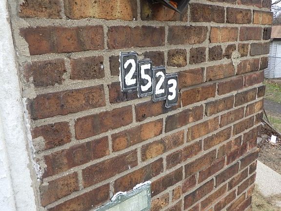 This half duplex brick home could be a charmer! Just needs repairs and decorating. It has a large grassy backyard, some hardwood floors, good sized rooms, and nice neat curb appeal. Situated on a small quiet street, this home has an appealing peaceful setting