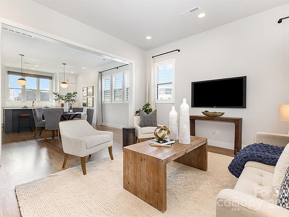 Experience urban living just steps from local restaurants, shops, and breweries—less than a mile to Uptown Charlotte. This spacious, modern townhome features hardwood floors throughout, upgraded subway tile, and plantation shutters on every window. The open-concept main level boasts 10’ ceilings, built-in ceiling speakers in the living area and covered porch, and a large 19-ft front porch perfect for entertaining. The lower-level bedroom is ideal for guests or a home office. Enjoy skyline views and walkable access to Bryant Park. Epoxied garage floor and overhead storage add extra convenience. Don’t miss this incredible opportunity!
