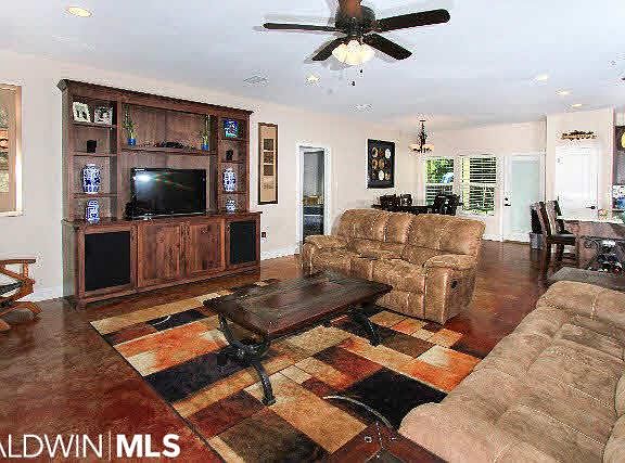 Located in the heart of the quaint town of Elberta-blocks from downtown, yet offers spacious cul-de-sac living and privacy! Very attractive home sits on 3 lots with plenty of space for boat or RV parking. The open floor plan kitchen has custom cabinets with granite countertops looking into a large dining area and living room. 3 BR split floor plan with an office. There is potential for a bonus room/4th bedroom upstairs which has been stubbed to include an additional bathroom as well. Additional large storage room off the 2 car garage. Covered rear porch and patio open to a very large backyard. Offers a neighborhood feel with PLENTY of space and not a cookie-cutter subdivision feel. This location/home/large lot is a rare find!
