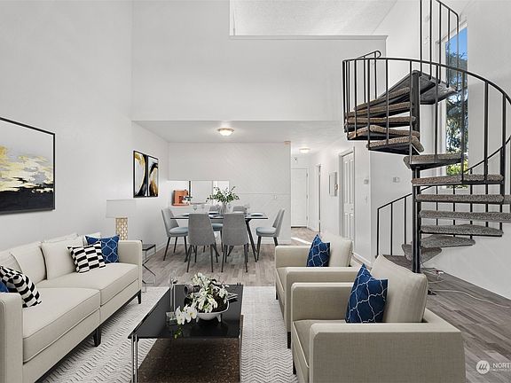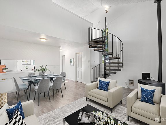 Gorgeous 1bdrm, 1.5-bath Townhome in Kent's vibrant East Hill neighborhood, 723 sq ft of comfy & cozy living space. Spiral staircase leads to the spacious loft bedroom, walk-in closet & full bath. The bright, open kitchen offers plenty of cabinet space. Fresh paint throughout and newer laminate floors. The large living room boost vaulted ceilings, pellet stove; & a patio off the living rm to enjoy BBQs, or relaxation. W/D included. HOA added new siding, windows, doors, lights & letters. Community amenities; clubhouse, pool, & cabana. Near shopping, schools, parks, and transit. Flexibility and ease for both owners and investors. HOA covers water, sewer, garbage, and lawn maintenance. 2 parking spaces. Away from busy roads. No rental Cap.