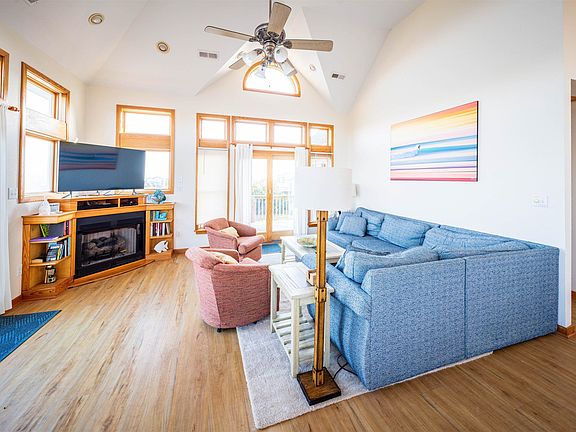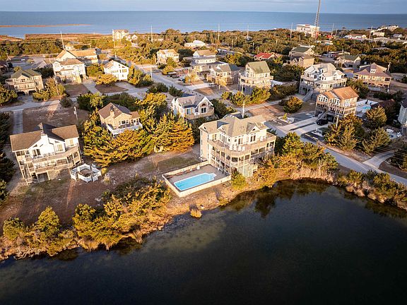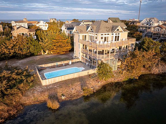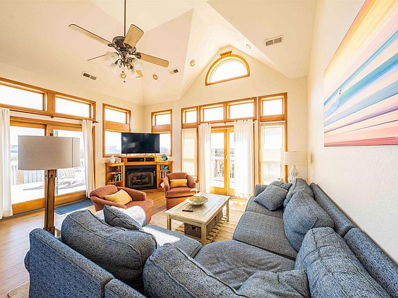 This idyllic setting is both lakefront and a short walk to the ocean. Spend peaceful vacation days in a home designed for comfort and enjoyment. The functional floor plan encompasses an open great room with vaulted ceilings and a wall of windows to showcase scenic water views, a spacious kitchen, six bedrooms including four with en suites, a loft, and a well-equipped game room. TOP LEVEL (L3): The sun-filled great room provides picturesque water views, a living area with cozy gas fireplace, an 8-seat dining table, a kitchen with stainless appliances and a 3-seat island for casual dining. Steps lead from the great room to a loft furnished with a table and 4 chairs, ideal for morning coffee, quiet conversations, card games, or additional dining space. A sliding glass door in the great room leads to a large sun deck overlooking the lake and pool area. The third level is completed with a king bedroom en suite with sun deck access. The private bath is equipped with a Jacuzzi tub. A half bath is conveniently located on the landing between the third and second floors. MID-LEVEL (L2): This floor is dedicated to four comfortable bedrooms, including two king en suite bedrooms with access to the covered deck. Two queen bedrooms on this level have covered deck access and share a hallway bathroom. The covered deck overlooks the pool and lake and provides built-in drink ledges, stools, and a relaxing 6-person hot tub. A utility closet is located on the landing between the second and first floors. GROUND LEVEL (L1): This floor will be popular with the kids! It has an en suite bedroom with two pyramid bunk sets and its own bathroom. The game room is outfitted with a pool table, two arcade games, a pub table, a full refrigerator and access to the pool area. A half bath on this floor is accessible to those in the game room and the pool area. OUTDOORS: Guests can enjoy a refreshing 15x30 private pool and an outdoor shower.