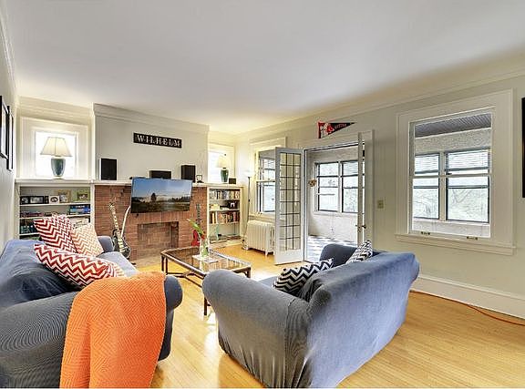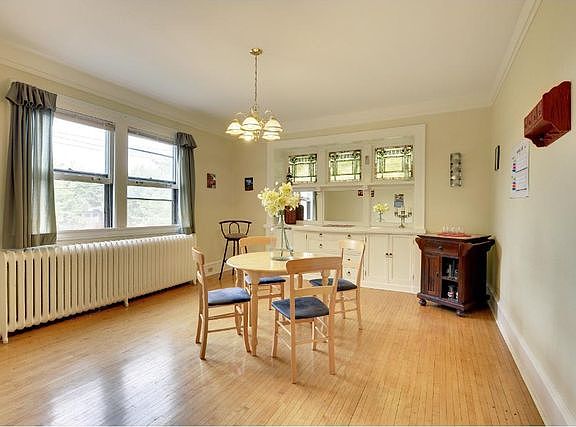 Classic turn-of-the-century charm with French doors leading from the living room to a large 3-season east facing sun room. Gorgeous built in buffet with Stainglass windows in the oversized dining room. 1st floor unit features two large bedrooms with a smaller office/den. Hardwood floors throughout the common spaces. Carpeted bedrooms. Sought after neighborhood, within easy walking distance of many shops, restaurants and the lakes.
