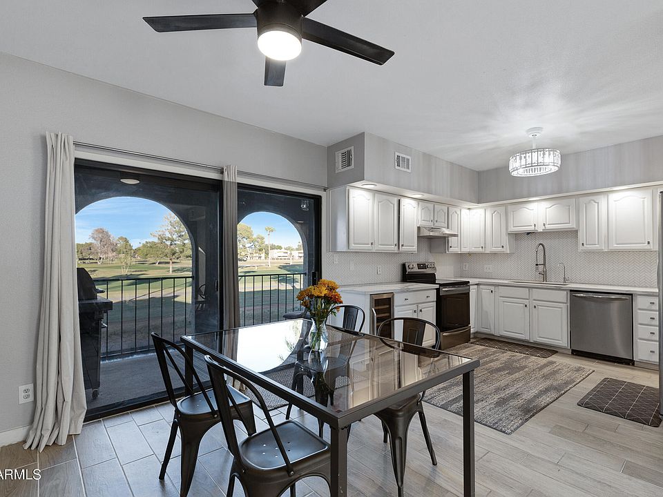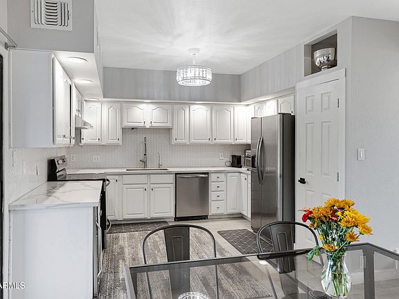 In the heart of desired Dobson Ranch, this nearly 2,000' sqft renovated townhome is an unbelievable value - under $200/sf! Overlooking the golf course, this stylish end unit is designed for modern living with an updated kitchen, designer tile & upgraded fixtures/lighting. Two expansive Arcadia doors open onto waterfront patios, perfect for seamless indoor - outdoor living. The home's three levels include a versatile lower level bonus room that can serve as a 4th bedroom, home office or entertainment space. A nearly new washer/dryer and RO unit are included as an added convenience.