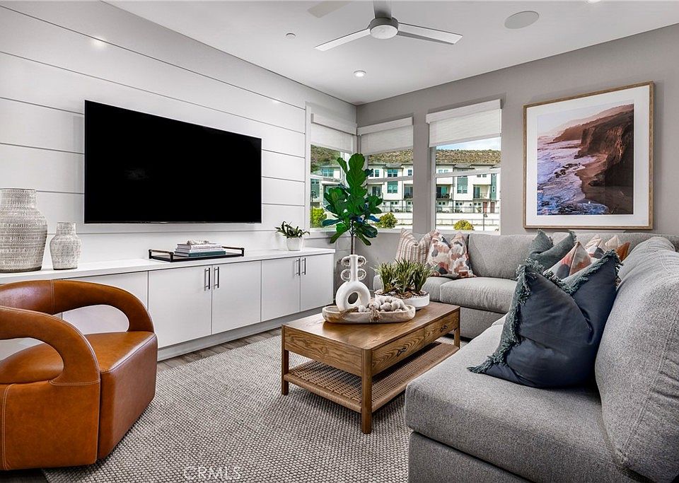 Welcome to Everly at Civita by Toll Brothers, a new community located in San Diego which is close to world class beaches, downtown, and exponential shopping and dining and easy freeway access. Homesite 1801 is a new construction home that is primely located in Civita. The E1X floorplan features 2 bedrooms, with 2.5 bathrooms, and is 1,458 sq. ft, with a 2-car garage. This amazing floorplan is located on a corner offers floor to ceiling window that allows the natural sunlight to shine indoors. The 2nd floor living area features a spacious chef’s kitchen with a center island. The kitchen and island are centered in the middle of open-concept floor plan offering an entertaining dream for gatherings and has a large kitchen pantry for additional storage. There is a functional covered deck off the dining room area which combines indoor and outdoor living San Diego is so well known for. The 3rd floor is comprised primary bedroom suite and has a walk-in closet. The secondary loft and bedroom are on the opposite side of the home making this home perfect for functionality. Laundry Room is conveniently located on the 3rd floor making your day to day living delightful. Highlights of the home include upgraded whole house Acrylic White cabinets with polished chrome handles, upgraded full slab quartz counters in kitchen with full slab backsplash, upgraded primary shower wall and floor tiling, brand-new full-size Whirlpool stacked washer and dryer, KitchenAid stainless steel appliances with gas stove, tankless water heater, owned solar, electric car charging outlet, additional electrical throughout and interior insulation package are just some of the many included options built into the price of this home. Homesite 1801,buyer still has the chance to select flooring for a limited time. Home is estimated to close escrow December 2025.