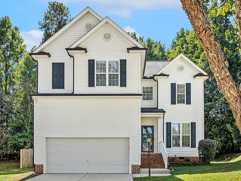 Welcome to this beautifully updated 4-bedroom home with loft in a convenient Raleigh location! Offering 2,024 sq. ft. of thoughtfully designed living space, this home combines modern style with everyday comfort. The main level features new luxury vinyl plank flooring, updated lighting and plumbing fixtures, and a bright, open layout. The kitchen is a showstopper with granite countertops, stylish tile backsplash, white cabinets, stainless appliances, and a smooth top range. The kitchen flows seamlessly into the breakfast area and family room, where you'll enjoy a cozy gas log fireplace and ceiling fan. Upstairs you'll find four spacious bedrooms plus a versatile loft, perfect for a home office, playroom, or media space. The primary suite is a true retreat with a large walk-in closet and an ensuite bath featuring dual vanities with granite countertops, a separate shower, and a relaxing jetted tub. Beautiful wood treads on the stairs and luxury vinyl flooring upstairs add a fresh, updated look throughout. Step outside to enjoy the expansive deck, fire pit, and fenced backyard, which has a gate that leads directly to the neighborhood pool. A washer and dryer are included for your convenience. All of this in a prime location just minutes to I-40, NC State University, Downtown Raleigh, shopping, and restaurants.