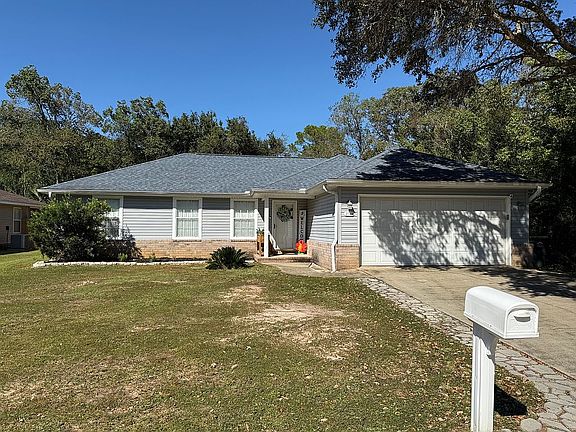 Beautiful 2002 year-built home with a two car garage located on .25 of an acre overlooking a wooded area. Conveniently located to schools, shopping with quick access to the Naval Air Station, Interstate 10 and Navy Federal. The roof was replaced in 2020, water heater and heating and cooling system were also replaced within the last few years as well as new dishwasher, refrigerator and microwave in the last year. The home has an open concept with a split bedroom plan. The kitchen includes a large pantry, a breakfast bar and is open to the dining area with a sliding glass door leading to a porch overlooking the fenced in backyard. The 19x14 great room has a vaulted ceiling and is light and bright with windows across the front of the home. The master suite includes a large walk-in closet, bath with double vanity, tub/shower and a large linen closet. The inside utility room is a 8.5 x 6.2 and leads to the two car garage.