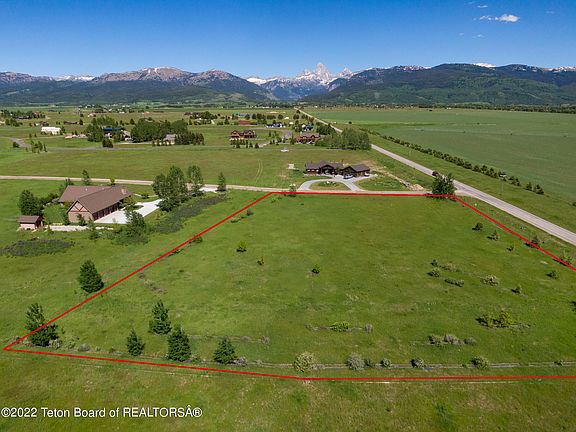 Big and bold Teton views! This large 3.16 acre lot is in a prime location- just off a paved county road with quick access to State Line road and Grand Targhee Ski & Summer Resort. Located in Teton Meadows, a small 13 lot development this parcel has established landscaping and a site plan ready for your dream home. Spruce, aspen, and pear trees, as well as bushes and roses, all irrigated from an underground gravity pressurized system. Reasonably restrictive CCRs protect property values and allow guest houses (800 sq ft or smaller), and a principal residence of 1500 square feet or larger. Rentals of longer than 30 days are allowed. Bring your floor plans and enjoy a location just 10 minutes to Driggs, the forest, the river, golf courses or skiing.