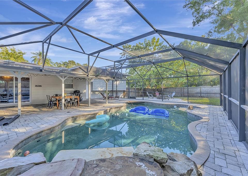 NEW on the MARKET! Come bring your family to see this beautiful home located between W Orlando and Ocoee. The huge plus with this 4/3 pool home, with NO HOA? The garage was converted to a comfortable in-law suite with a separate entrance. You will love the beautiful, real wood floor throughout the home. The Septic tank was emptied and inspected less than 2 years ago. The interior has been freshly painted and includes a brand-new washer and dryer and stainless steel appliances. Great libraries, schools, and public parks nearby. Come spend quiet afternoons in the screened-in custom 30 x 18 pool that includes a waterfall, granite bar with bar stools, and a shallow sitting area surrounded by pavers and an outside fire pit. Room Feature: Linen Closet In Bath (Primary Bedroom).