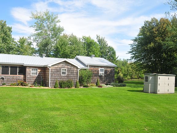 Details Home 1,500 sq feet 1.3 Acres Land with river frontage. Fully updated 2010 & 2011 Red Cedar Shingle siding, Metal roof on house and garage, new insulation in walls and attic, new windows triple pane, low-E, argon. Master bedroom and bath with walk in closet 1 additional bedroom 1 additional bath Eat in Kitchen, custom maple cabinetry including appliances that have energy star rating Dining Room Living Room Enclosed Porch Deck off living room Laundry/Utility Room/Storage - Washer and Dryer - energy star Oak Hardwood Floors - Tiled Floor - Carpeted bedrooms Custom Window shades to stay as well as kitchen and living room drapes. Heat Sources - On Demand - Propane hot water - in floor heat with 3 zones. Kitchen, Baths and Master Bedroom Harmon 25th Anniversary Model wood pellet stove in living room Garage 2 car with remotes 1800 square feet 2X6 construction, insulated Heated (new Propane forced air) 2nd Floor Hobby area New septic Extra Storage buildings Perrenial Landscaping Docks, New 8000 watt Generator. Washer,gas dryer,fridge, and gas stove Chazy school district. For more info call 518-524-2921 or 518-524-2322. or email rmose1955@gmail.com There are actually 2 lots, the garage is on one and the house on the other.