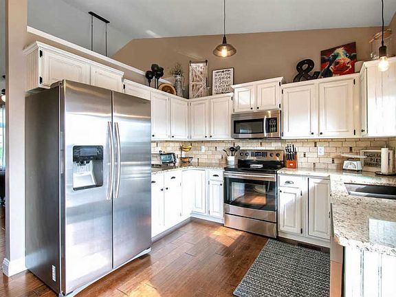 This quad is the perfect example of QUALITY. 4 bedrooms, 2 1/2 baths, 2 car garage on a corner lot tucked away on a quiet street, but close to all derby has to offer and just a short walk to the neighborhood grade school. Beautiful engineered hardwood flooring on main level. Granite countertops in kitchen and all baths. New faucets. 5 inch trim and crown molding. The large master suite is on the upper level with walk-in closet. 2 more oversized bedrooms and guest bath. The lower lever has a cozy family room with wood burning fireplace with walk out door to the patio. The basement has the 4th bedroom and ample sized storage space. Modern colors from interior to exterior. The exterior has lush landscaping, fully fenced backyard,deck and patio for great outdoor living space. Seller has added a whole home humidifier, new A Coil, sump pump with battery backup, new fire and carbon monoxide detector. The garage is insulated to keep your cars and belongings warm in the window and cooler in the summer. New side entry door. All custom blinds stay with the home. Well cared for home. Call today to schedule your private tour.