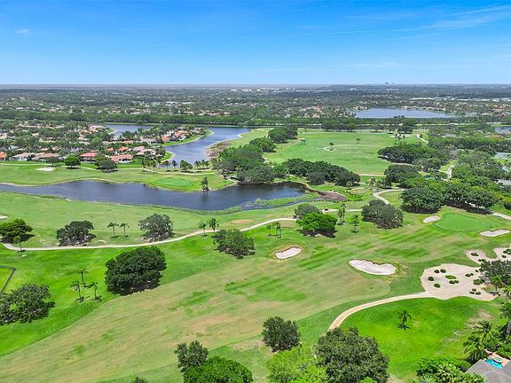 Discover timeless luxury & unparalleled serenity in this grand 4BD/4BA/3CG residence with Library/Den & Game/Media Room set back on almost half acre fully fenced corner lot w/stunning golf views! Upon arrival, the long, stately driveway with abundant parking space & well-manicured grounds sets the tone. Inside, the gracious home impresses with expansive, light-filled living spaces, soaring ceilings, marble flooring w/ freshly painted interior & new LED lighting. Large windows frame sweeping views of the manicured fairways & private pool/spa deck, while elegant architectural details elevate every room. Wet Bar, Chef's kitchen w/Miele appliances, wine fridge, walk-in pantry. Generous bedrooms w/hardwood flooring. Private garden off game room is perfect for play! ROOF 2018, IMPACT FRENCH DRS. The informal areas feature a sunken granite wet bar with cocktail seating, the breakfast area with wood paneling and a family room with a wall of windows and impact glass doors that overlook the private backyard retreat. A spacious bonus room, great as a media, game or playroom with French doors that open to a private garden, is perfect for play or relaxation. The chef's kitchen features solid wood cabinetry, high-end stainless Miele and Sub- Zero appliances, a wine refrigerator in the center island and walk-in pantry.