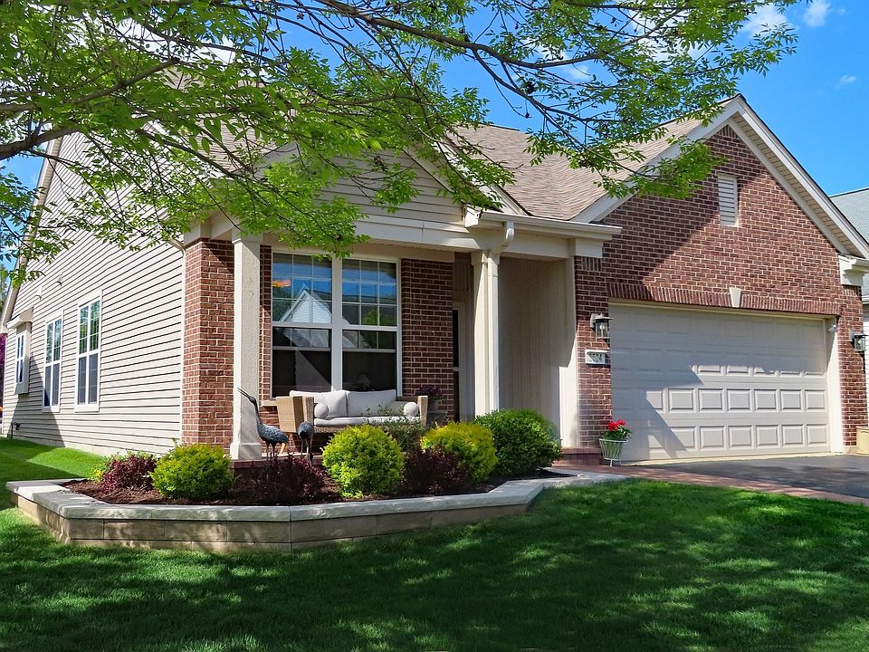WOW! Are you waiting for a WATERFRONT Location? Here it is and very hard to find in Edgewater by Del Webb...PLUS a wonderful UPDATED HOUSE! This Belmont model has a Family Room/ Kitchen combination. Kitchen has 42" CHERRY cabinets w/knobs, quartz counters, an island, SS refrigerator, newer SS microwave, and HARDWOOD FLOORS IN ALL ROOMS! Newer Master Bath Shower with tile to ceiling. House has a NEW ROOF 2020! Upgraded window sills also.Attached TV in Family Room stays with 5 speakers, sub-woofer and DVR player. Foyer has newer grass cloth wallpaper Underground Sprinkler installed also. Custom window treatments through-out. Newer front hardscape wall, brick porch, and ribbons on side of driveway. Concrete patio with lighted wall.Beautiful red bud tree, extra trees in the waterfront easement area and house has view of the lighted fountain. Lighted flag pole stays in rear yard. Edgewater takes care of snow removal and lawn care, seal coating of driveways and mulch in front every 2 years. Edgewater is a gated community 24/7, Indoor and Outdoor pools, fitness center, tennis/pickle ball and bocce courts. One person living in house needs to be at least 55+.(Seller prefers closing after 9/1)***Multiple Offers Received, H & B offers due by 5/20 at 9 PM***