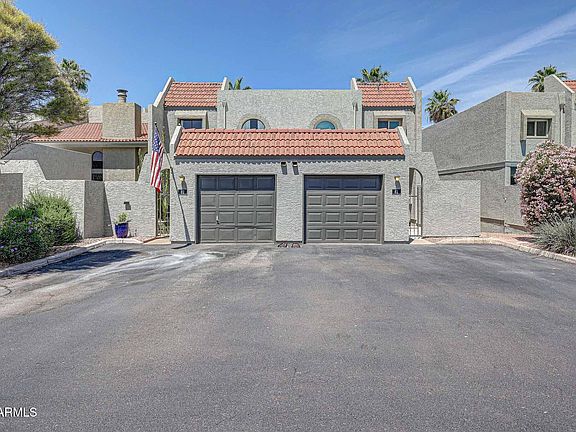 Beautifully maintained 4-bed, 3-bath tri-level townhome in gated Lake Park at Dobson Ranch! Backs to the golf course and canal with scenic views from upper & lower patios. Flexible floor plan includes 2 primary suites—one upstairs with a walk-in closet and ensuite bath, and one on the lower level with private bath, laundry, and patio access—ideal for guests, multi-gen living, or a home office. Main level features an open living/dining area and updated kitchen with rich cabinetry and granite tile counters. Enjoy a 1-car garage, community pool, and full access to Dobson Ranch amenities: lakes, multiple pools, tennis, pickleball, clubhouse, and more. Prime Mesa location near ASU, freeways, and shopping. Perfect for year-round or seasonal living!