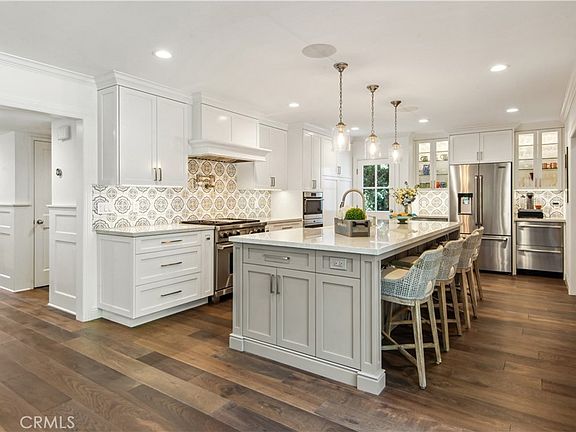 Incredible Coastal Cape Cod in the heart of lower Lunada Bay with the famous red door! From the minute you arrive, the charm and character is abundant. The entry level includes an inviting living room with bay window and roaring fireplace, a formal dining room, a spectacular kitchen with center island and an adjacent family room set up as a cozy media room. There’s even a guest bedroom with private bathroom on the entry level. Cascading LaCantina doors provide a 16 foot passageway to the lushly landscaped, resort-like backyard, complete with fire pit, outdoor kitchen, as well as a sparkling pool & spa; it’s spectacular! Upstairs, you’ll find 4 bedrooms, (one being used as an office) including an oversized primary suite with vaulted ceiling, walk-in closet and luxurious bathroom. Used brick accents, hardwood floors, wainscoting, crown molding, air-conditioning, and so much more. Conveniently located just blocks from Lunada Bay Elementary, Palos Verdes Intermediate and PV High School, as well as Lunada Bay Plaza, this house has it all!