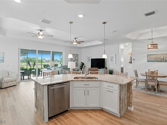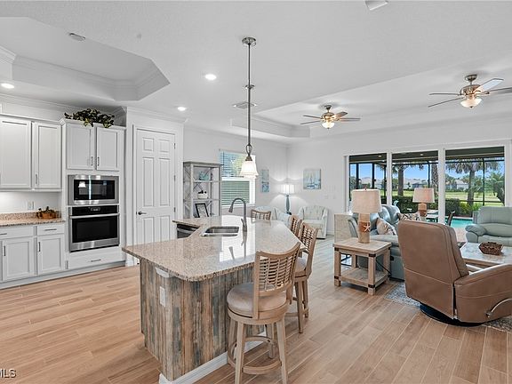 Enjoy Incredible Views and Resort Living in Heritage Landing. Discover your own private oasis with a deeded golf membership & breathtaking views of both the golf course & sparkling lake. This elegant home is designed for the ultimate Florida lifestyle, featuring a private pool, outdoor kitchen, and expansive lanai that makes every day feel like a resort escape. Step inside to an open floor plan that flows seamlessly from the kitchen and living room to the outdoor living space. High tray ceilings, crown molding, and plank tile flooring create an atmosphere of refined elegance. The gourmet kitchen is a chef’s dream with stainless steel appliances, wall microwave/oven combo, cooktop, large island with granite countertops, under-cabinet lighting, and a spacious pantry. The living room’s triple sliding patio doors extend the living space outdoors to the covered lanai—perfect for alfresco dining and entertaining. Retreat to the luxurious primary suite with private lanai access, walk-in closets, and a spa-inspired bathroom featuring split vanities, granite countertops, a garden tub, walk-in shower, and private water closet. The split floor plan offers privacy with a second bedroom and full bath, while the versatile den with French doors can serve as a home office or guest room. This home offers peace of mind with impact windows, Storm Smart Shutters, and a prime location in a non-flood zone. Built for safety and comfort, it’s the perfect blend of security and convenience—whether you’re a full-time resident or a seasonal homeowner. Beyond your doorstep, Heritage Landing offers a Gordon Lewis Championship golf course, pickleball, tennis, bocce ball, and a world-class fitness center. Relax at the resort-style pool or enjoy food and drinks at the Tiki Bar, or restaurant in the clubhouse. Conveniently located near downtown Punta Gorda, with easy access to both Punta Gorda and Fort Myers airports, this home combines luxury, leisure, and convenience. Don’t miss your chance to own this extraordinary home with unmatched views in Heritage Landing Golf & Country Club.