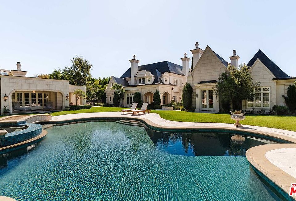 Located behind the sought-after double gates of the Estates of the Oaks, this one-of-a-kind French Country masterpiece sets the bar for the neighborhood. Sitting on just under an acre at the end of the cul-de-sac, the over 14,000-square-foot residence was built with no expense spared, showcasing impeccable craftsmanship, curated finishes, and world-class amenities. Spanning three levels, the main house offers an unrivaled living experience. A grand chef's kitchen is complemented by a secondary full-service kitchen, ideal for entertaining. Two elegant dining rooms, a breathtaking two-story library/study, a state-of-the-art theater, a wine cellar with tasting room, a spacious gym with a sauna, and two executive offices are just a glimpse of the estate's extensive offerings. The grand primary suite enjoys a private wing on the main level, complete with two fireplaces, a separate sitting room, dressing rooms, and dual spa-inspired bathrooms with expansive walk-in closets. Resort-like grounds feature a sparkling pool and spa, an outdoor kitchen, and sprawling manicured lawns. A separate, self-contained guest house includes a large living room with a fireplace, bedroom, dining room, and a kitchenetteperfect for visitors or extended stays. The stately circular driveway, anchored by a majestic oak tree, leads to a porte-cochre and a four-car garage. Opportunities to own a home of this caliber are exceedingly rare, especially within this prestigious community. This is truly one of Southern California's finest estates.