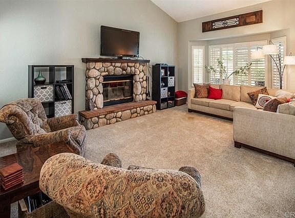 Wow! What a charming updated and well maintained home. Buyers will love the water wise landscaping with turf grass and enjoy the sport court in the backyard that has horse trail access. New tile roof, rain gutters and sophisticated color scheme painted on exterior all completed in 2019. Tile entry flows to a lovely living room with stone fireplace and vaulted ceilings. Feast your eyes on the upgraded kitchen with Bardon Cabinetry and beautiful granite counters, s/steel appliances, eat at island and breakfast area. Back slider opens to patio with brick and a gas firepit. Formal dining has French doors to private side patio. Private master suite awaits you with vaulted ceiling and walk in closet. Dual vanity and jetted tub with separate shower and a slider that opens to the back patio area. So many wonderful details. Third bedroom has custom built in desk and storage and is currently being used as an office.