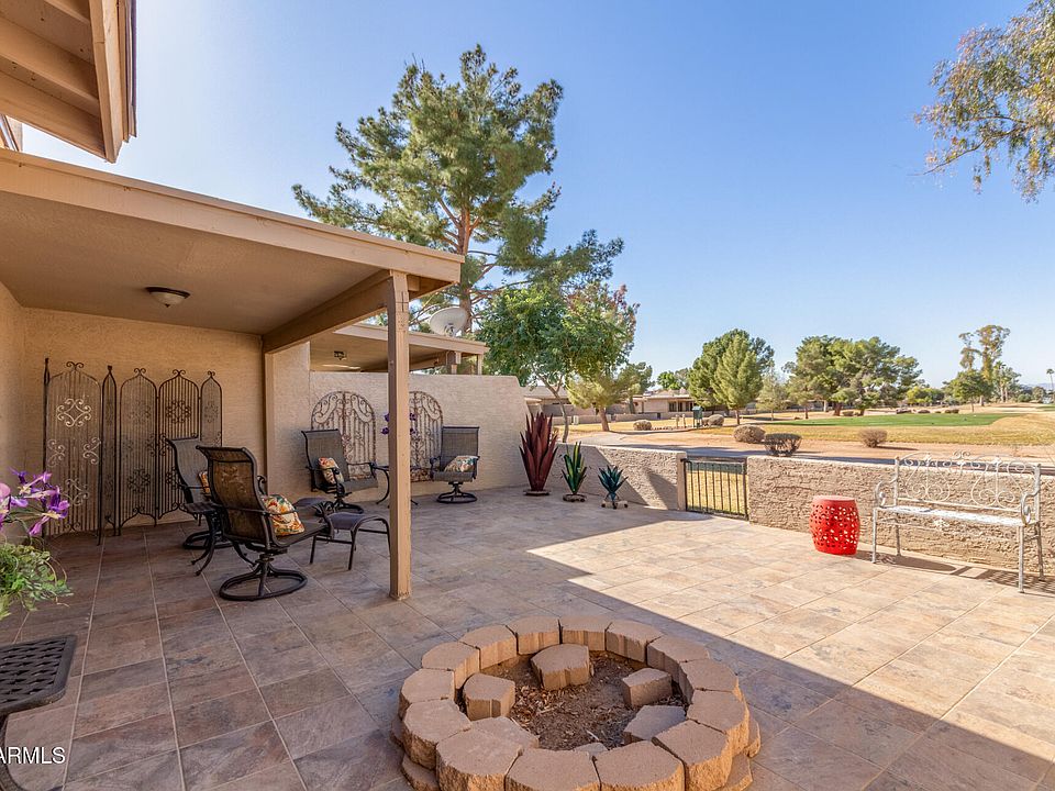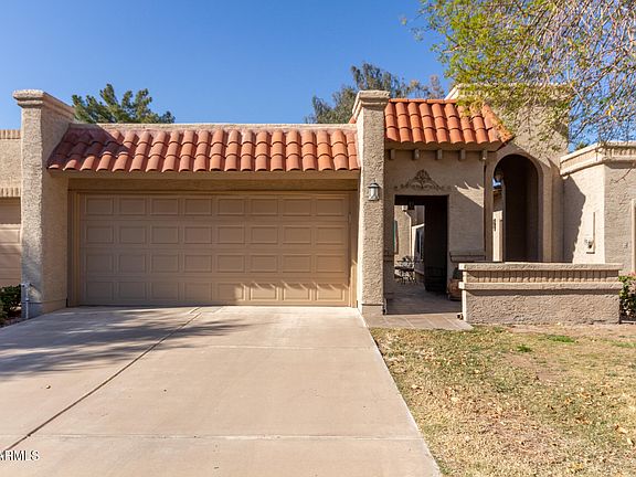 Experience resort-style living every day!Enjoy breathtaking Arizona sunsets as you look down two fairways from this beautiful fully furnished townhouse with stunning golf course and mountain views.This inviting two-bedroom,two-bath home offers an open,airy feel with a formal dining area and a spacious great room featuring vaulted ceilings,skylights, & cozy fireplace.The remodeled kitchen includes a bright breakfast nook with a custom skylight & elegant ceiling lighting.Tile flooring is featured in all the right places.Convenience meets comfort w/inside laundry room (washer and dryer included) and 2-car garage with the center post removed for a single, wide entry.Step outside to a large back patio w/custom pavers—perfect for relaxing or entertaining.All furniture and contents included. while taking in the panoramic views of the golf course and mountains. Additional upgrades include a hot water recirculating pump and three sun tube lights that fill the entry hall, laundry room, and master shower with natural light. Located within walking distance of the clubhouse, this home truly combines luxury, comfort, and convenienceall in one perfect package.