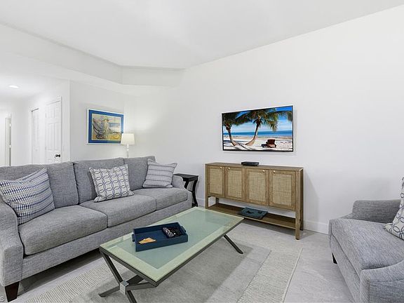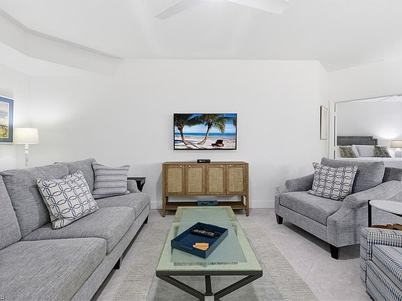 Charming 3-Bedroom Condominium Overlooking the Golf Course available for season. This remodeled 1st-floor condominium is a hidden gem nestled in a serene neighborhood, ideal for those seeking comfort, convenience, and a touch of luxury. Boasting three spacious bedrooms and two bathrooms. Step into an open-concept living space that invites you to relax and unwind. The well-furnished living area seamlessly connects with the dining space, featuring a comfortable sofa, two chic chairs, and a flat-screen TV. The heart of this home is the fully equipped kitchen, boasting a large, spacious island with seating stools, ideal for casual meals or morning coffee. Retreat to the tranquil primary suite, featuring a plush king bed, a flat-screen TV, and a generous walk-in closet. The updated ensuite bathroom offers a spa-like experience with dual sinks and an expansive walk-in shower. Two well-appointed guest bedrooms are designed with comfort in mind, each furnished with cozy queen beds and sharing a modern guest bathroom. Perfect for visiting friends or family, these rooms ensure everyone feels at home. Step outside to your private lanai, where you can enjoy alfresco dining with a table for six, or unwind in one of the two lounge chairs while taking in the picturesque views of the golf course. This condo also features a laundry room, ensuring that your household chores are a breeze. A single-car garage provides secure parking and additional storage space. Plus, enjoy the ease of complimentary Wi-Fi throughout the unit. Just steps away from the neighborhood pool, this condo offers the perfect blend of relaxation and recreation. Living in Pelican Landing offers an unparalleled lifestyle of leisure and recreation. Enjoy exclusive access to a variety of amenities, including: a watercraft shuttle to the beach Seven days a week...The beach is located on 34 acres at the northern tip of Big Hickory Island. Community Center with state of the art fitness, pickle ball, bocce, Tennis center includes a pro shop and 12 Har-tru lighted tennis courts. Located close to dining, shopping and entertainment, and offers easy access to US 41/Tamiami Trl and I-75. Quick access to Naples, the Southwest Florida International Airport (RSW).