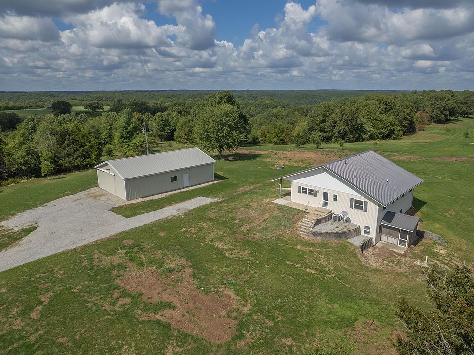 ADDED ACREAGE - 18.74 Acres with Million-Dollar Views at a Fraction of the Price! This spacious 2,800+ sq ft home on 18.74 acres features 3 bedrooms, 2.5 baths, and a versatile bonus room that can serve as a 4th bedroom or large family room. Built in 2001 with tornado-resistant ICF construction and 12'' insulated, rebar-reinforced concrete foam walls, the home blends long-lasting durability with energy efficiency. A new metal roof adds both value and peace of mind.Just a quarter mile off the highway and bordering the Mark Twain National Forest, the property offers both convenience and privacy, along with breathtaking views.The main level includes a full kitchen with reverse osmosis, dining and living rooms, 2 bedrooms, and 1.5 baths. The walkout basement adds a second full kitchen (also with reverse osmosis), 1 bedroom, 1 bath, and a spacious bonus room with unlimited potential--perfect for multi-generational living, guests, or recreation.Additional features include a dual-fuel heating system, central air conditioning, LifeBreath fresh air purification system, water softener, and a 30x50 shop with half bath.This is a rare opportunity to own a well-built home on acreage with incredible views, modern comforts, and direct access to nature.