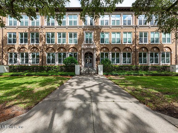 Welcome to a rare opportunity to own one of the most private and serene residences in the historic John Gorrie building, Experience seclusion & tranquility in Riverside's architectural gem, Easy elevator access to this private unit situated on the top floor. There are NO units above or below! Enjoy the large stately windows which offer abundant natural light & full privacy & epic sunsets! Admire the original character of the 12' exposed brick and plaster walls & the beautifully maintained oak floors. The large open living area provides space & flexibility for your everyday needs. Kitchen has ample prep space on quartz counter tops, SS appliances, & hardwood cabinets .Upgrades include high end lighting & fans throughout, wooden plantation shutters, additional modern storage, nest thermostat,. Amenities include a fitness room, 2 gated parking spots, reading room with wifi, serene courtyard, elevator, and gorgeous oak trees surrounding the common areas. Located within walking and biking distance of highly desirable local Riverside shops, cafes, restaurants, parks, movie theater & nightlife!