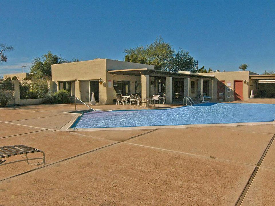 Beautiful townhouse comm.,convenient to the U Of A, Banner hospital, buslines & walking paths.Large living/dining area. Bright eat in kitchen, 2 bedroomsm mst.has large walk-in closet. New roof w/5 year warranty. Private patio off living and master bedroom. HOA covers water/sewer, trash pick up,exterior landscaping in front yard,streets, pool/spa and tennis courts, rec center. Great for investor to rent.