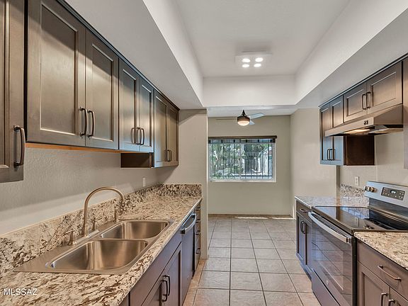 This stylishly updated townhome is in a prime central location near the Tucson Racquet Club and The Loop. An inviting 3-bedroom, 2-bathroom townhome that sits in a beautifully maintained community offering resort-style amenities. Residents enjoy a sparkling pool and spa, tennis courts, and a welcoming clubhouse, with water, trash, and sewer services conveniently included in the HOA. Inside, the home blends modern updates with everyday comfort. The kitchen is highlighted by sleek granite countertops, updated cabinetry, and stainless steel appliances. Fresh paint, new carpet, and updated windows fill the interior with light and a refreshed feel. A converted den creates a flexible third bedroom, while the primary suite features a stylishly renewed vanity. (Continued) For a more contemporary look, most of the acoustic ceiling texture has been removed. Key upgrades add peace of mind, including a recently replaced roof and skylights, a newer water heater, and a well-maintained Trane HVAC system (2015). A washer and dryer are also included, making this home truly move-in ready. The private backyard offers low-maintenance turf, newer fencing, and a freshly recoated carport surface, perfect for relaxing outdoors. With its central location, modern updates, and low-maintenance lifestyle, this home is the perfect combination of comfort, convenience, and community.