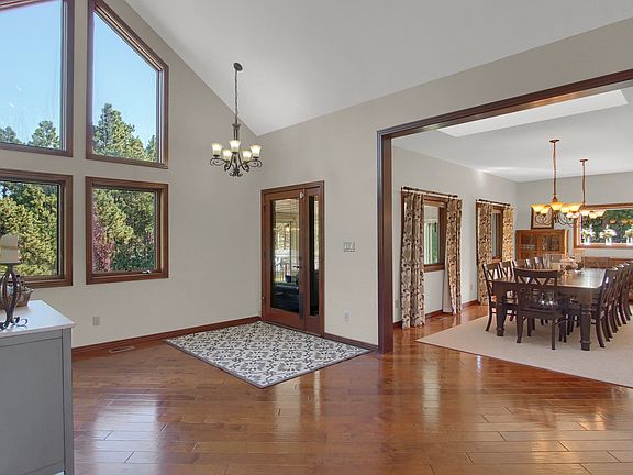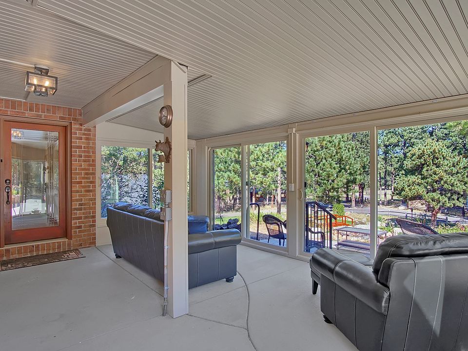 Welcome to Stagecoach Ranch! This gorgeous 8-acre, one-of-a-kind, multigenerational sanctuary provides all the amenities youll need for western living! Rustic curb appeal with a fully updated, modern interior! Dramatic floor to ceiling double sided stone fireplace with luxury vinyl flooring (LVT) throughout! On 1 side of the fireplace is a cozy library w/ built in bookcase & custom spiral wooden staircase leading to an entertainment loft area w/ skylight. The other side is a spacious sitting area w/ high vaulted ceilings near the gourmet kitchen that has been beautifully remodeled! Formal dining room that can easily seat 12-14 people w/ skylight & windows that overlook the sunroom. Main level living would not be perfected w/o a master bedroom w/ walk in closet, access to a composite deck, 5-piece bath, & AC wall unit. Walkout lower level features a 2nd kitchen, wood burning fireplace, 3 roomy bedrooms (1 is ensuite w/ a full bath), Jack & Jill bath, 3/4 bath, laundry room, storage room, & exercise room! Elevator for easy access! The 4th level leads to the mother-in-law apartment which features 1 bed, 2 stylish baths, 2 car garage, covered front porch & an unfinished loft! In addition, there is a historic 1892 Wells Fargo stagecoach log cabin! The international harvester tractor, farm implements & windmill immediately set the mood. Ute prayer trees adorn the entrance. A beautiful koi pond, twin waterfalls & viewing bridge will delight every one of all ages. Property also features trampoline & playset which are complimented by a swim spa, basketball court, a complete gym, 9-hole frisbee golf, horseshoes & bocce! The Toy Barn contains ATVs for the expansive trails. Garage space enough for 14 cars! Roof has heat cables for melting snow. This property is a true respite from the world at just mile from Fox Run park & 2 miles from the club at Flying Horse. Come check out this great luxury estate! Be sure to check out the full description in the uploaded documents!