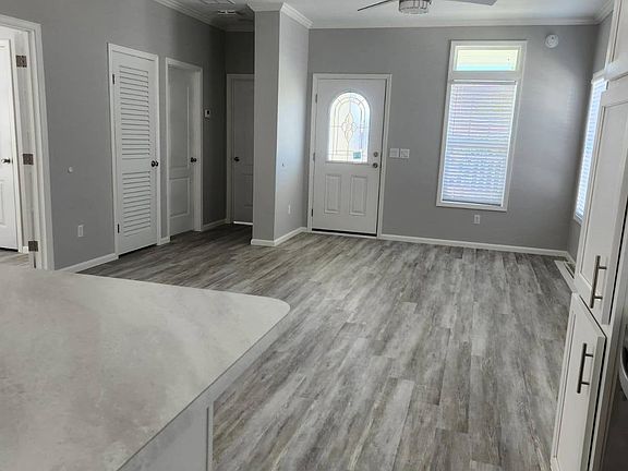French doorsOpen conceptCeiling fansFront porchLaundry roomFaux wood blindsConvection range