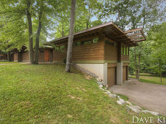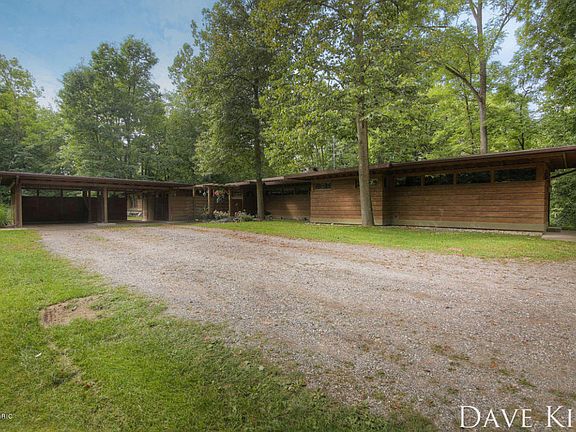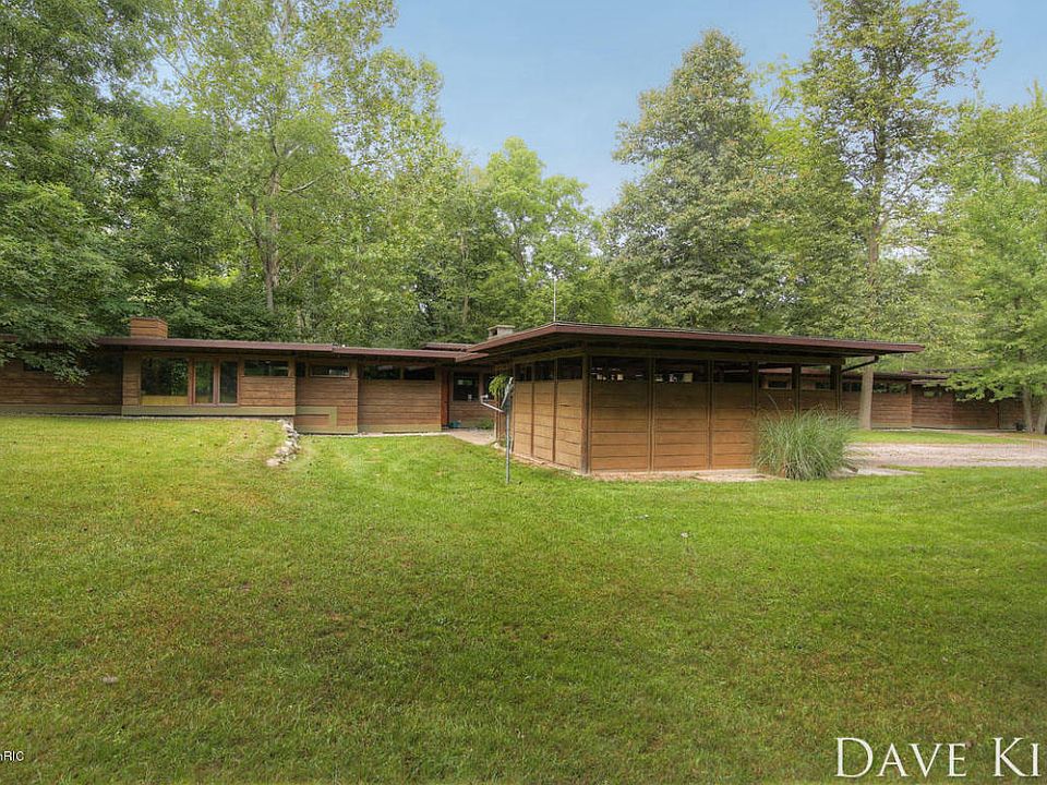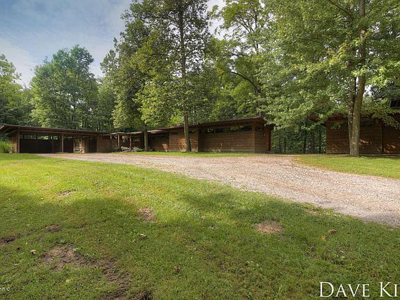 4+ bedroom, 4 bathroom mid-century modern home in the tradition of Franklin Lloyd Wright for sale in TK Schools! On almost 6 acres with 800 feet of Thornapple River frontage; this enchanting home sprawls across the landscape overlooking the beauty of the earth! Perhaps the most beautiful and unique home in the area; words do no justice, one must bear witness the beauty and lovely property to fully enjoy and appreciate the vision that has been successfully brought to life. With a master suite, e normous kitchen, in-floor heat, 2 fireplaces, views abound, finshed basement, 4 stalls of garage space, accessory apartment, office, main floor laundry, great location, & more; you will enjoy the many luxuries that offer a wonder compliment to this home. Well worth the time; this home is a must see! Call listing agent Dave Kiel for a showing today!