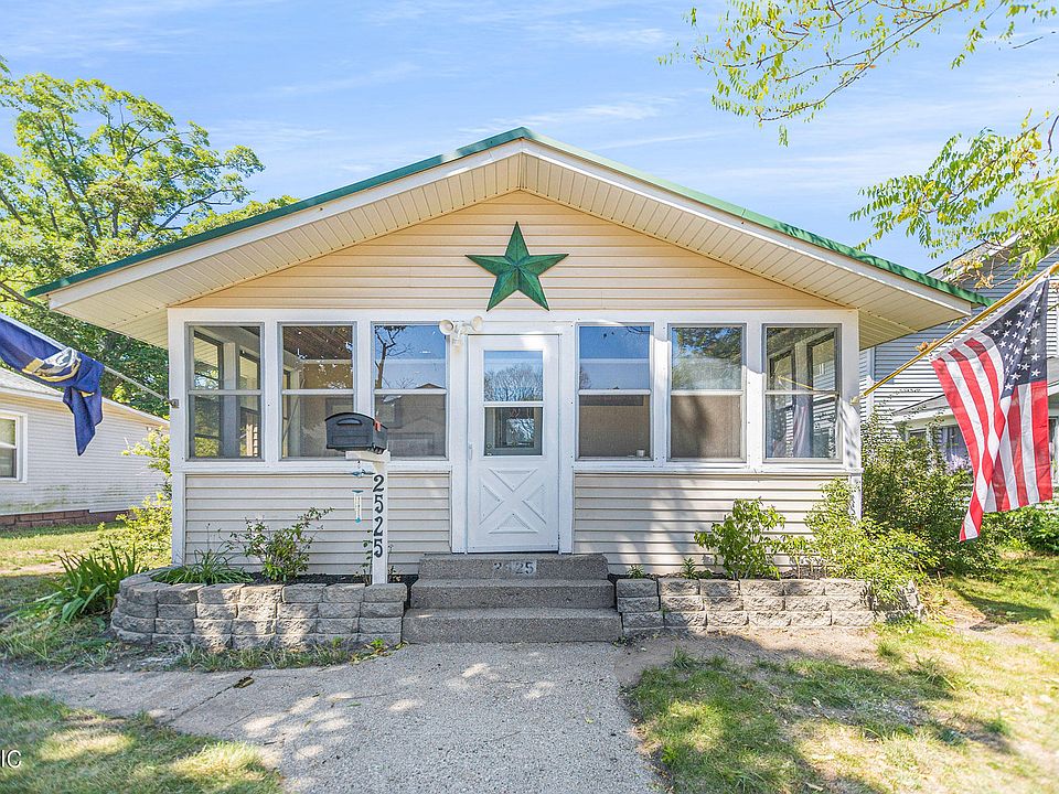 This adorable 2+ bedroom Craftsmen located in Lakeside is ready to move into. Home offers a newer metal roof, flooring, concrete pad for parking and replacement windows. Features include a full basement, fenced in backyard, adorable 3 season porch, and a spacious outdoor shed. Short distance to Lake Michigan.