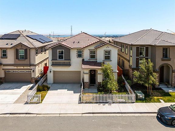 Welcome to this beautifully upgraded 5-bedroom, 3-bathroom home, featuring a 2-car garage and a desirable full bedroom and bath on the main level. This home is better than new, offering thoughtful upgrades far beyond builder standards. Enjoy upgraded hardwood flooring throughout the first floor, plush carpet with premium padding upstairs, and a chef's kitchen with granite countertops and stylish white cabinets with brushed nickel knobs. The luxurious primary bath includes a soaking tub and upgraded fixtures, creating a spa-like retreat. Step outside to your private backyard oasis: lush green grass, blooming flowers, mature fruit trees, and a custom-built deck with a gazebo, perfect for relaxing or entertaining. Located just 5 minutes from the Pittsburg BART Station and close to schools, shopping, and freeway access. Enjoy a nearby community park and best of all, no HOA. This move-in-ready home combines comfort, quality, and convenience in one incredible package!