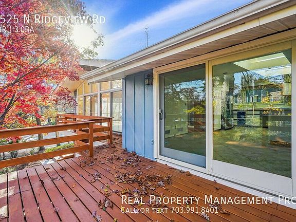 Stunning Mid-Century Modern Rambler in North Arlington. Beautiful two-level property featuring classic mid-century architectural elements and well-preserved original details. The main level showcases hardwood flooring, vaulted ceilings, exposed beams, and floor-to-ceiling window panels surrounding the central fireplace. Sliding doors connect the living area to a rear deck, which also extends from the expansive eat-in kitchen. The dining area opens to a spacious kitchen with large skylights, new stainless steel appliances, and retro cabinetry that maintains the home's character. The main level includes two sizable bedrooms with a shared full bath, as well as a private bedroom suite with its own bath and custom walk-in closet. The lower level features new carpet, a large recreation space with a window wall and access to a generous patio surrounded by mature landscaping. This level also includes two additional rooms and a full bathideal for a home office, fitness area, media space, or guest use. A second fireplace adds additional character. An oversized two-car garage, abundant driveway parking, and a covered front porch complete the exterior features. Convenient access to local amenities along Langston Blvd, nearby parks, trail connections, and major commuter routes including I-66 and the GW Parkway.