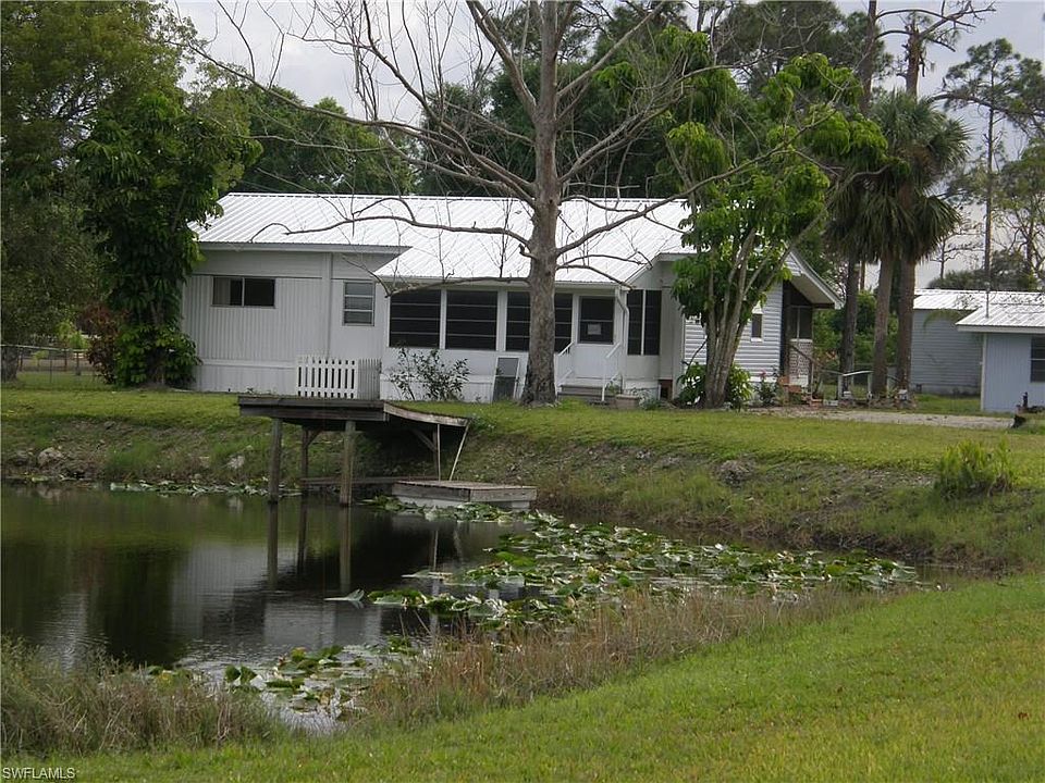 Endless possibilities with this 2.5 acre homestead! The home has been nicely updated and features front and back porches, metal roof and attached laundry room. Separate one-car garage has enclosed garden shed at back. Work shop includes a large work area and side storage including air compressor. Back wood working shop is air conditioned and includes master wood working equipment, saws, vices, clamps, drill press and vac system plus office w/ drafting table and wood storage area. Perfect for your home business and/or shop. Fruit trees and mostly fenced. Plus your own private pond LOADED with fish! Quiet neighborhood just outside LaBelle.
