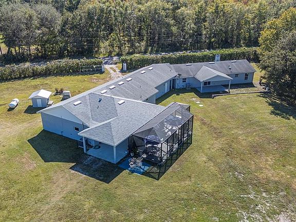Rare 5-Acre Multi-Generational Retreat Just Minutes from I-4! Experience the perfect balance of modern living and peaceful country charm on this exceptional property featuring two move-in-ready homes seamlessly connected by a shared 2-car garage. The 2022-built primary home offers 2,109 sq. ft. of bright, open living space with a split floor plan, 2 bedrooms, and 2.5 bathrooms—perfect for entertaining and everyday comfort. The chef’s kitchen shines with custom cabinetry and granite countertops, opening to expansive living areas and a large screened lanai with brick pavers overlooking tranquil acreage. Abundant storage, a two-zone A/C system, and an additional side carport add to the home’s convenience and appeal. The updated secondary home (ADU or mother-in-law suite) provides an impressive 2,038 sq. ft. with a full kitchen, 3 bedrooms, and 3 bathrooms. The spacious primary suite features two separate bathrooms, including one with a soaking tub and separate shower. A versatile flex room can serve as a den, office, or additional storage, while a large rear porch creates yet another space to relax or entertain guests. This property is built for both function and fun, boasting an automatic front gate, 24k generator, owned 500-gallon propane tank, commercial-grade saltwater filtration system, A/C-controlled metal-roof barn (25x40), large tractor workshop (52x25), updated septic and drain field (2023), and a new well and pressure tank (2025). Whether you’re hosting gatherings, storing toys, hobby farming, or simply enjoying wide-open space and privacy, this one-of-a-kind property delivers unmatched flexibility and lifestyle appeal. Bring your toys, bring the dreams, and schedule your private showing today!