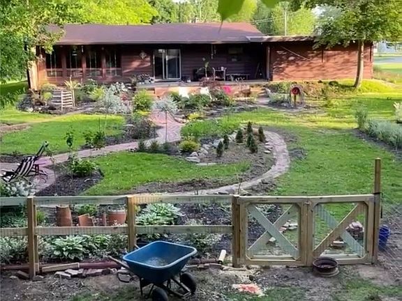Frank Lloyd Wright-inspired cedar Ranch custom home situated on a stunning back wooded lot that abuts the land atop the Reservoir. Fabulous brick wall topped w/casement windows for natural lighting spans the entire length of the open kitchen, dining area and Great Room. This space also has a gorgeous vaulted wood-beamed ceiling and a wall of sliders and windows that overlook the private, landscaped backyard sanctuary! The gourmet kitchen features a new Terrazzo countertop (Dec 2023), sink (2023), commercial refrigerator, built-in pantry/closet and endless counter space and cupboards. There are 3 bedrooms to the right of the entrance foyer. The owner's suite is very large and has 3 large closets and a full en suite bath. The other 2 bedrooms feature large closets as well. One of them has 2 closets and a dressing area. The lower level is mostly finished and has an absolutely beautiful Rec Room complete with sconces and overhead lighting, wet bar, finished brick walls and professionally finished concrete flooring. There is a new full bath (Nov 2023) next to the Rec Room and an oversized laundry room plus a huge storage room. Throughout the home you will notice stunning wood and louvered wood doors w/tasteful levers. The color scheme and materials enhance the rustic contemporary style of the home. There are 2 connected outbuildings along with a fenced/gated area. The larger of the buildings has a massive 10ft brick fireplace. The winding hand-laid brick walks and the extensive garden beds are pure paradise. Updates include garage door, roof 5-10 yrs, HVAC 5-7 yrs (very large units), hot water tank 2 yrs, fixtures, paint, some plumbing and electrical, water filtration system, UV light and water softener, wet bar, full lower bath, lower flooring all finished 2020-2023.