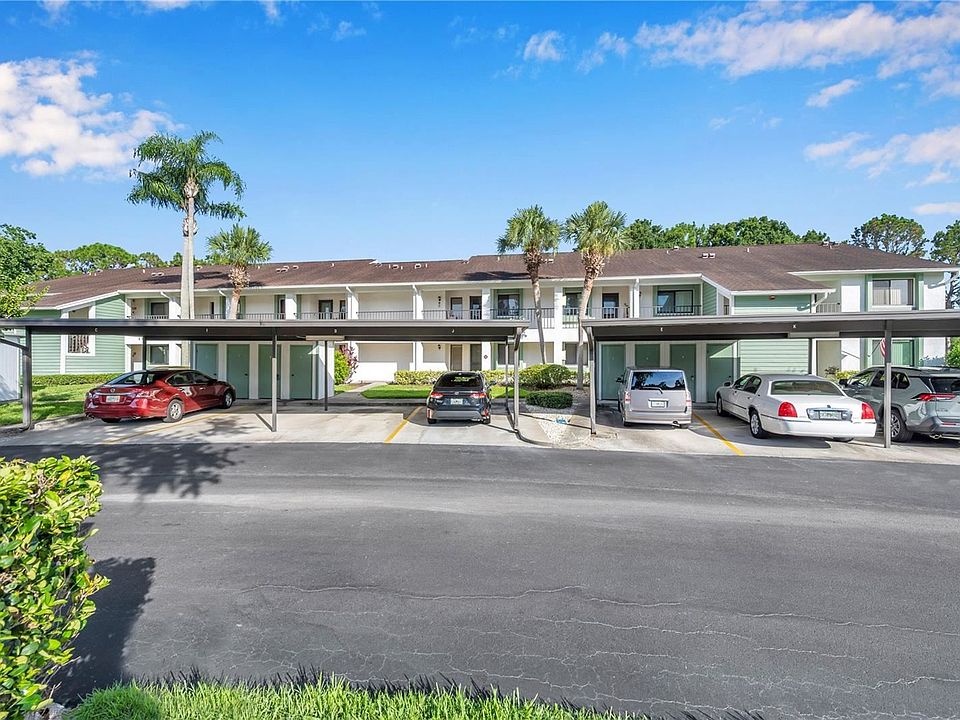 The seller has received multiple offers and is requesting all highest and best offers to be delivered by 9am on Saturday 7/24/21. Terrific opportunity to own in the much sought after 55+ community of Village on the Green. This condo has immense potential. The current owner started the renovation with fresh paint throughout, new luxury vinyl flooring in the living areas, new tile in the Florida room and brand new stainless steel refrigerator and stove. This ground floor condo features 1 bedroom 1.5 bathrooms a huge living area, an inside laundry and a storage room in the carport. You will love the screened Florida Room that overlooks the pond with no rear neighbors. Village on the Green features a community swimming pool, shuffle board courts, picnic area complete with grills, community club house with a fitness room, library kitchen and more. This home is a must see.