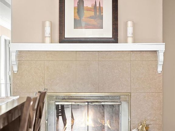 Cozy fireplaceStainless steel appliancesSpacious covered patioBright kitchenAll-white cabinetryNewly updated laminate countertops