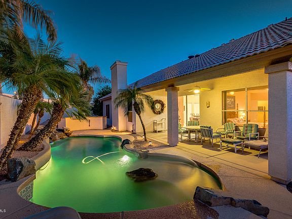 Great home for entertaining friends & family. Single level. 4 bedrooms. 2 baths. 2,323 sq ft. Master split from other bedrooms. Master bath features dual vanities, separate soaking tub & shower, plus large walk-in closet. Nice kitchen with island open to family room with fireplace, built-in entertainment center & surround sound. Also has a formal front living room and a dining room. Vaulted ceilings give the home an open, spacious feel. Oasis backyard. Enjoy lounging or entertaining on the large covered patio overlooking the private pool with rock waterfall. 3 car garage with extra storage cabinets. Newer appliances, furnace, A/C unit, pool pump & BBQ grill. New roof ($13k) being installed in a couple weeks. *** This home can be purchased fully furnished or unfurnished. Your choice. ***
