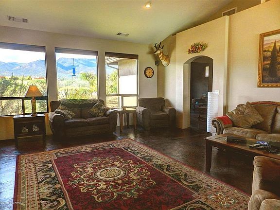 Spectacular newer home with peaktop, red rock and Mingus Mountain views from every room. Wonderful, warm ambiance in this spacious home with something for everyone. Living room with vaulted ceiling, gas 3-sided fireplace and awesome views. Beautiful kitchen w/ granite, breakfast bar and walk-in pantry adjacent to formal dining room. Huge master suite with sitting area, gas fireplace, patio, and deluxe master bath with whirlpool tub and separate shower. Home also features a den/office and 2 additional bedrooms with guest bath, a 1/2 bath, laundry room and oversize 2-car garage. Outdoor living areas include open and covered patios, pool, jacuzzi, grass yard, garden, shade trees, and views! There's also a separate fenced yard for Fido. Plenty of room for your RV and all of your hobbies!