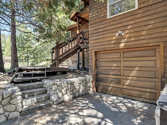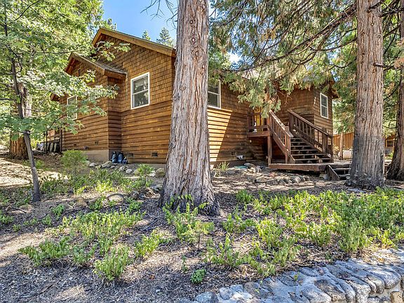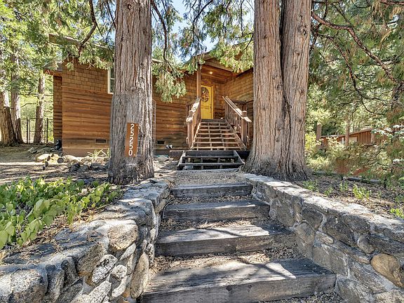 DRAMATIC OPEN DESIGN IN GREAT LOCATION. A spacious light filled great room with multiple exposed beams, natural edge cedar posts and a stunning floor to ceiling river rock fireplace, highlight this architect designed home located on a large, usable parcel in desirable Fern Valley. The open floor plan combines a generous size kitchen with cook top island with breakfast bar and a separate dining area with French doors to a large deck overlooking the huge fully fenced private back yard. There are 3 bedrooms and 2 full baths. The large upstairs primary bedroom has cathedral ceiling with skylights, multiple windows with wonderful light, lots of space for a home office, a big walk-in closet, a private balcony and a primary bath with double sink vanity. There are 2 generous sized guest rooms, including one with exterior access to the rear deck, and a full bath, on the main level. Built in 1992, this fine home has dual pane wood windows, window blinds, propane forced air heat, newer roof (2019), on demand hot water heater, and an attached oversized finished single car garage with laundry and extra storage space. You will love the location and .42 acre setting on beautiful Palomar Rd.