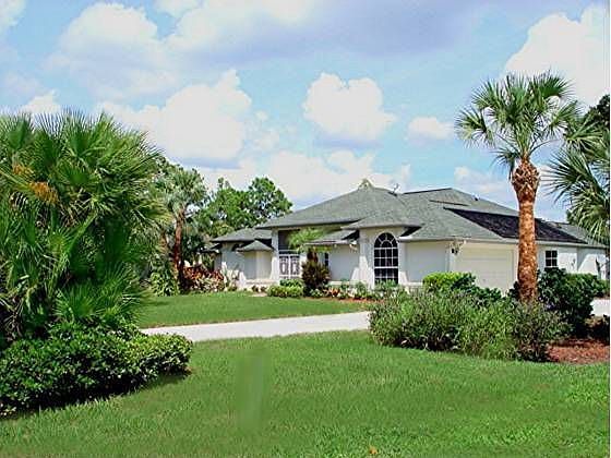 This 3/2 Great Room Pool Home is situated on a lush 1/2 acre parcel that features mature vegetation and tremendous privacy! Nestled at the end of a quiet cul-de-sac, this home will bring you peace and tranquility. The exterior features include a wellfor lawn irrigation, a nice long driveway and an oversized side loading 2 car garage. Enter through the double glass front entry doors and you step into a large great room with volume ceilings and an open dining room that look out to the lanai and pool.The kitchen has granite counters with good storage and is complimented by a poolside dining nook. The master suite has his/her walk-in closets, private bath with dual sinks, soaking tub, stall shower and private commode. When building this home the owners added an additional 4' in length to the 3rd bedroom which serves as a very inviting den/office. Both the 2nd and 3rd bedrooms feature walk-in closets.... storage is not an issue in this home! The pool has both a traditional pool heater in addition to solar heating and the lanai deck was recently resurfaced. Don't let this gem pass you by!