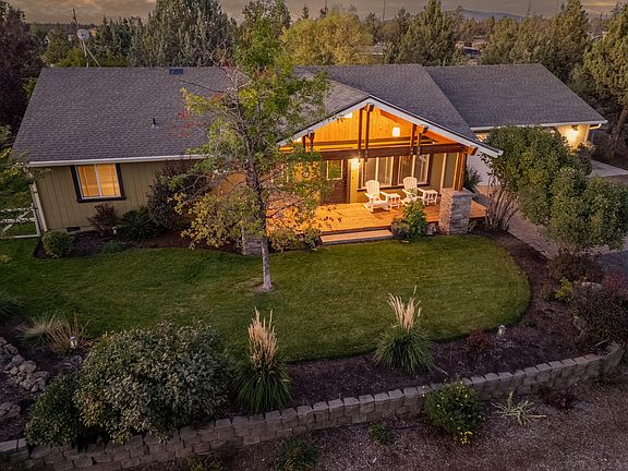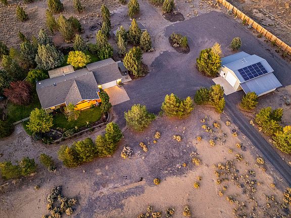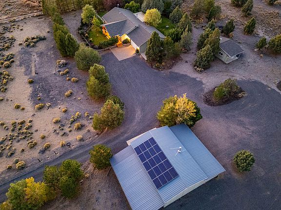 Enjoy serene rural lifestyle while you are easily minutes from shopping, dining, schools and hospital on Bend's east side. You will love this oasis, with it's voluminous mature trees, plants and shrubs. The single level home, with generous room sizing, ample countertop & storage space, oversized attached 2 car garage, multiple heat sources/ductless cooling and covered front and rear decks will enhance your daily living. Property is fully fenced, gated with some cross-fencing. RV/toy compatible with insulated/heated shop w/ lean-to's on 2 sides, 240v50a electric circuit, newer owned solar system in place. Additionally, a separate studio, currently an office, previously an art/craft studio, could be a great fitness area. This building also houses a greenhouse area, as well as 3000 gallon water cistern, minimizing wear/tear to well pump. Direct access to BLM property. Come visit this wonderful home!