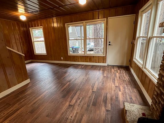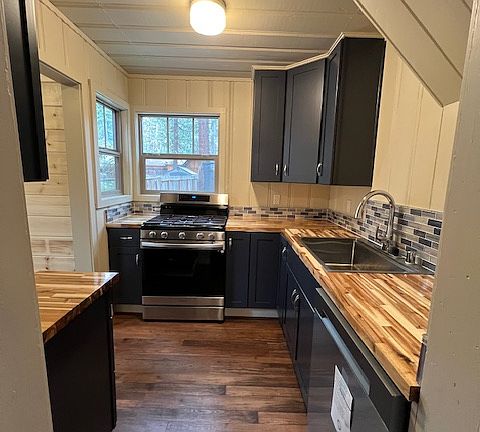 Tahoe Cabin Charm! This home boasts a renovated kitchen with a new gas range, dishwasher, SS sink, garbage disposal, cabinets, countertops and tile backsplash. New LVP plank & tile flooring through out the house. Renovated bathroom with new vanity & tile shower surround and flooring. Separate laundry room off the kitchen. Enjoy a private backyard with a deck and a storage shed. Tandem parking for 2 cars on the driveway. Newer roof and some new windows. Speaking of windows, this home has many large windows to enjoy the natural light.