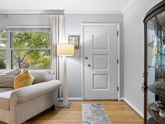 Nestled in a beautiful serene neighborhood where deer and wild turkey are often seen roaming the tree-lined streets, this impeccably maintained ranch-style home offers single-level living with a full basement for endless possibilities. Boasting 3 spacious bedrooms (one being used for dining), 2 bathrooms, and two car attached garage, this gem sits on a large, fully fenced backyard lot with a beautiful patio area, perfect for entertaining, gardening, or simply relaxing in your private oasis. Step inside to discover the original hardwood flooring throughout the main living areas, complemented by tile in the kitchen and bathrooms. The heart of the home is the updated kitchen, featuring a gas stove (gas stove/electric oven), food disposal, GE Stainless Steel appliances added in 2022, and modern cabinets. This beautiful kitchen is ideal for the home chef. Cozy up in the versatile dining/office/den area with gas logs. Enjoy the luxury cedar lined closets in both bedrooms for ample storage and that fresh aromatic touch. The expansive basement provides a dedicated area for a workshop and abundant storage. Recent upgrades include French drains and a new driveway. Enjoy peace of mind in a welcoming community with wonderful neighbors and an active neighborhood watch program that fosters safety and connection. Priced to sell in a highly desirable, family-friendly area - schedule your private showing and make this ranch your forever home!