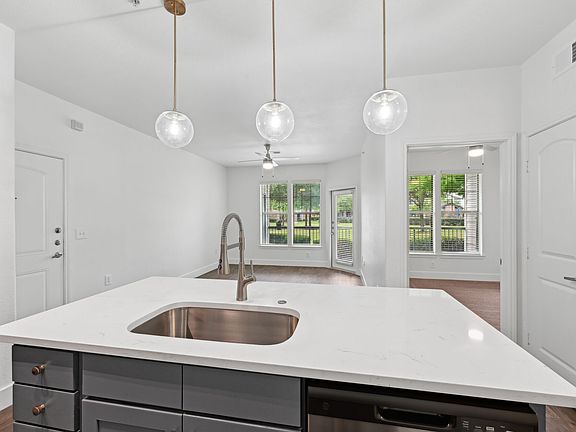 - Exterior features: 2 Panel Doors, 3 Inch Baseboards, 6 Inch Baseboards, Backsplash in Kitchen, Barbecue, Brown Wood Style Flooring, Brushed Nickel Fixtures, Brushed Nickel Hardware, Car Wash Station, Conference Room, Dog Grooming Station, Espresso Cabinets, Farmhouse Sink, Floor Covering: Ceramic, Flooring: Ceramic, Formica Countertops, Free Weights, Garages, Garden, Gold Hardware, Granite Countertops, Kitchen Island, Landscaped Courtyards, On Call Emergency Maintenance, Package Receiving, Pet Park, Pet Washing Station, Pickleball Court - Coming Soon!, Private Access Garages, Quartz countertops, Spin Studio, Spruce Lifestyle Services, Stackable W/D Connection, Stainless steel appliances, TV Lounge, Tan Kitchen Backsplash, Track and Pendant lighting, Two-Toned Cabinets, USB Port, Undermount Sink, Wellness Center, White Granite